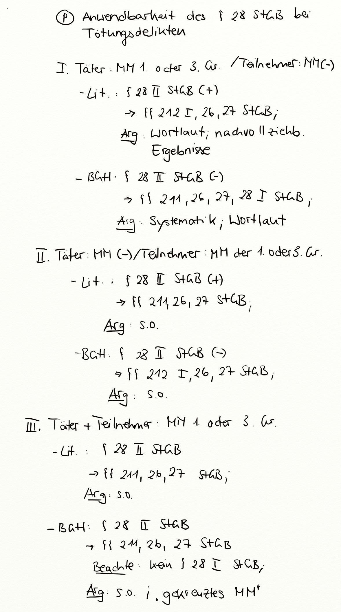 Problem - Anwendbarkeit des § 28 StGB bei den Tötungsdelikten