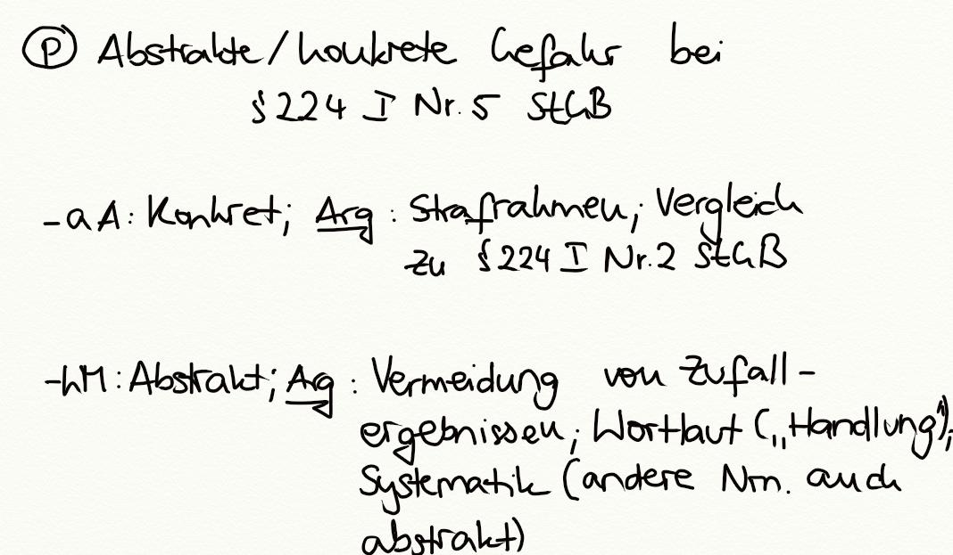 Problem - Abstrakte oder konkrete Gefahr bei § 224 StGB