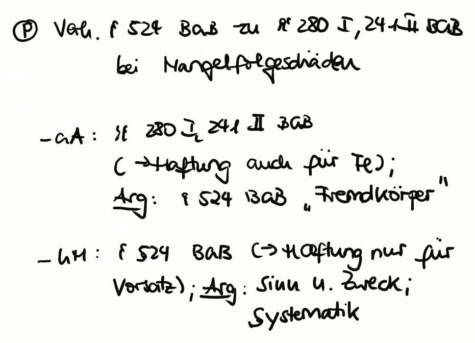 Problem - Verhältnis von § 524 BGB zu §§ 280 I, 241 II BGB bei Mangelfolgeschäden