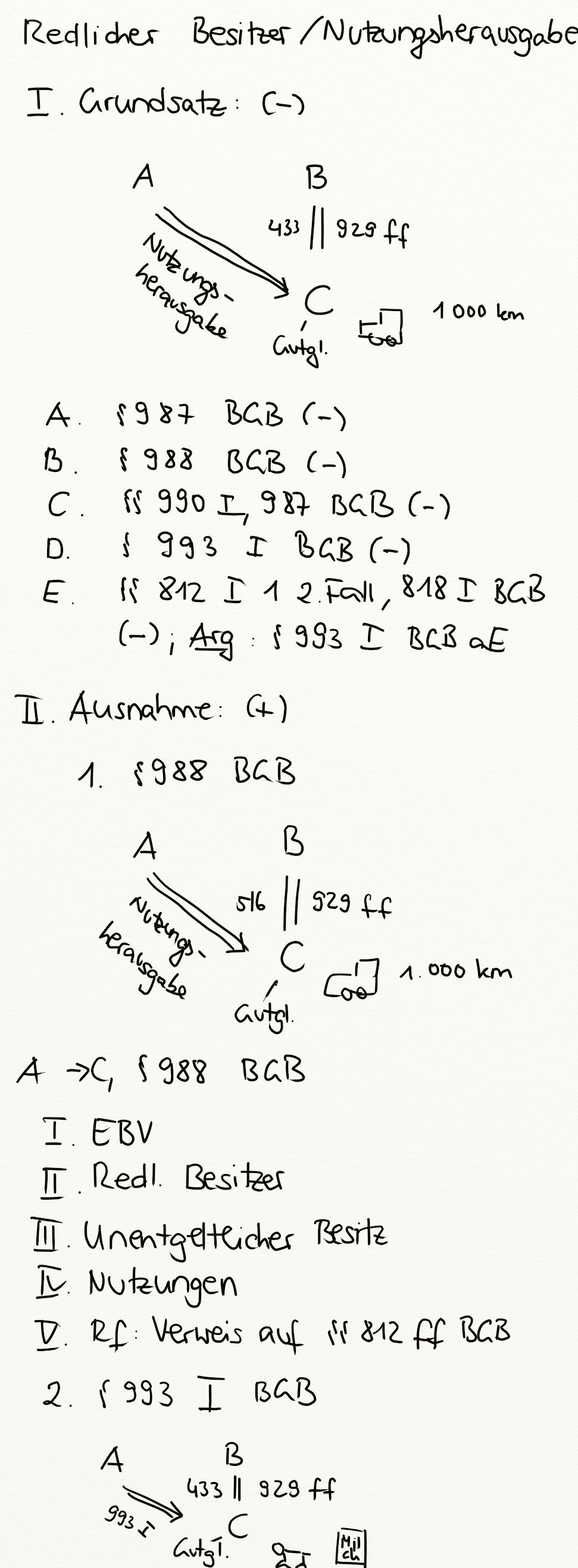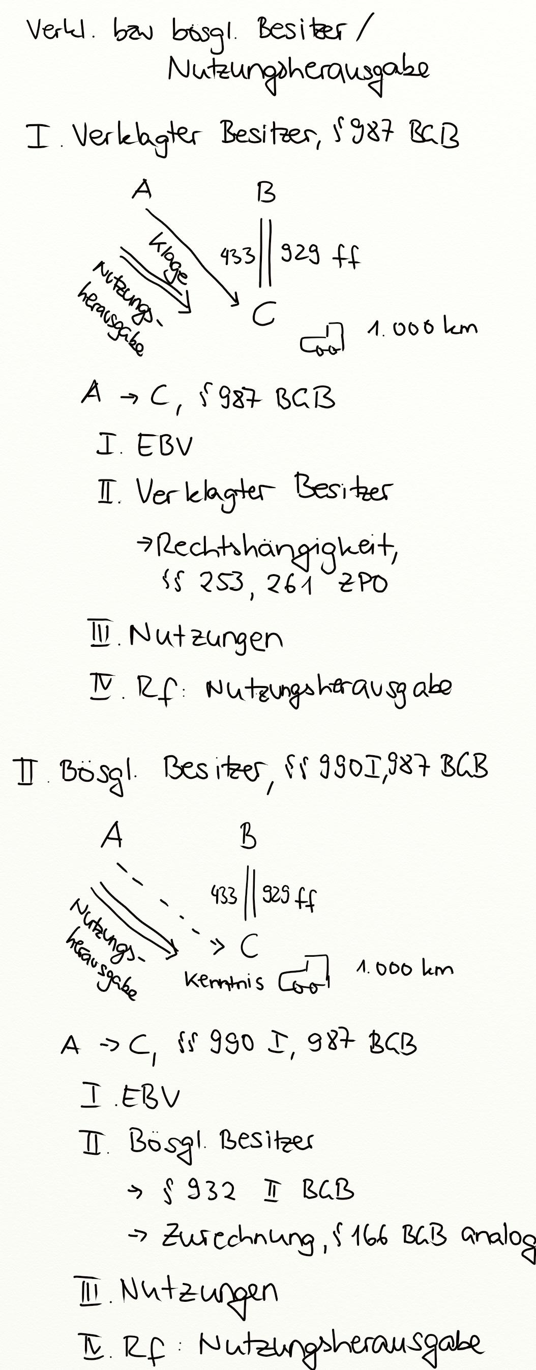 Nutzungsherausgabe, Eigentümer-Besitzer-Verhältnis, Schadensersatz, EBV, Redlicher Besitzer, bösgläubiger Besitzer, Verklagter Besitzer, Verwendungsersatz, § 987 BGB, Sperrwirkung des EBV, § 993 BGB, Deliktischer Besitzer, § 850 BGB, § 994 II BGB, § 993 I BGB, § 991 II BGB, § 990 I BGB, § 994 I BGB, § 991 BGB, § 989 BGB, § 988 BGB, § 990 BGB, Sachändernde Verwendungen, § 996 BGB, § 994 BGB