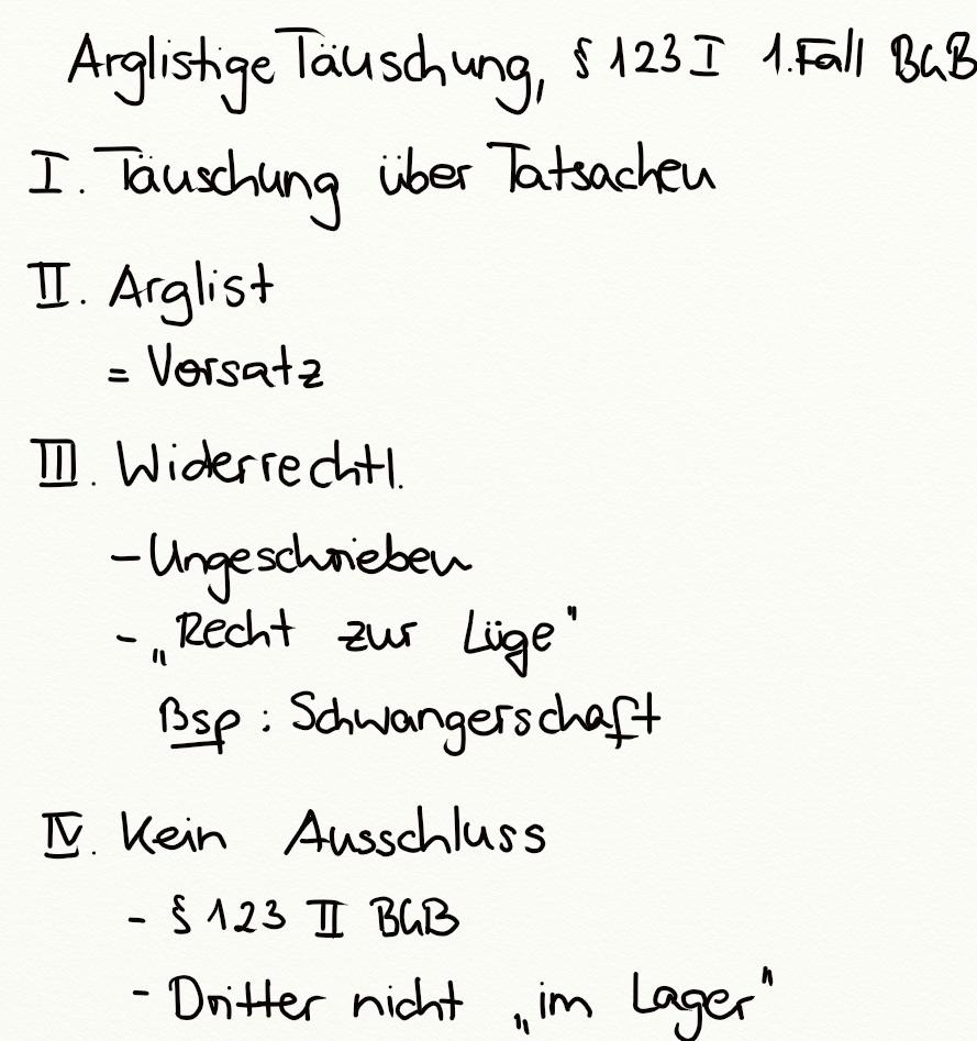 Arglistige Täuschung, § 123 I 1. Fall BGB