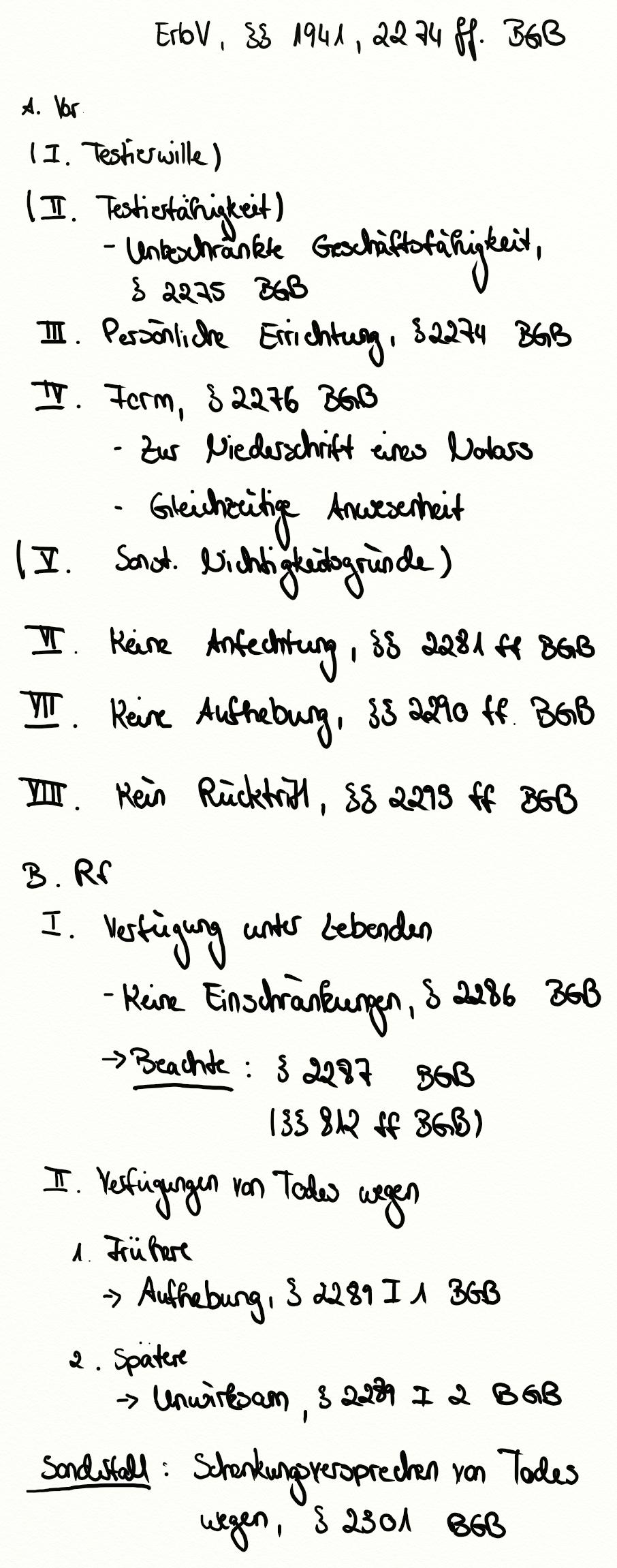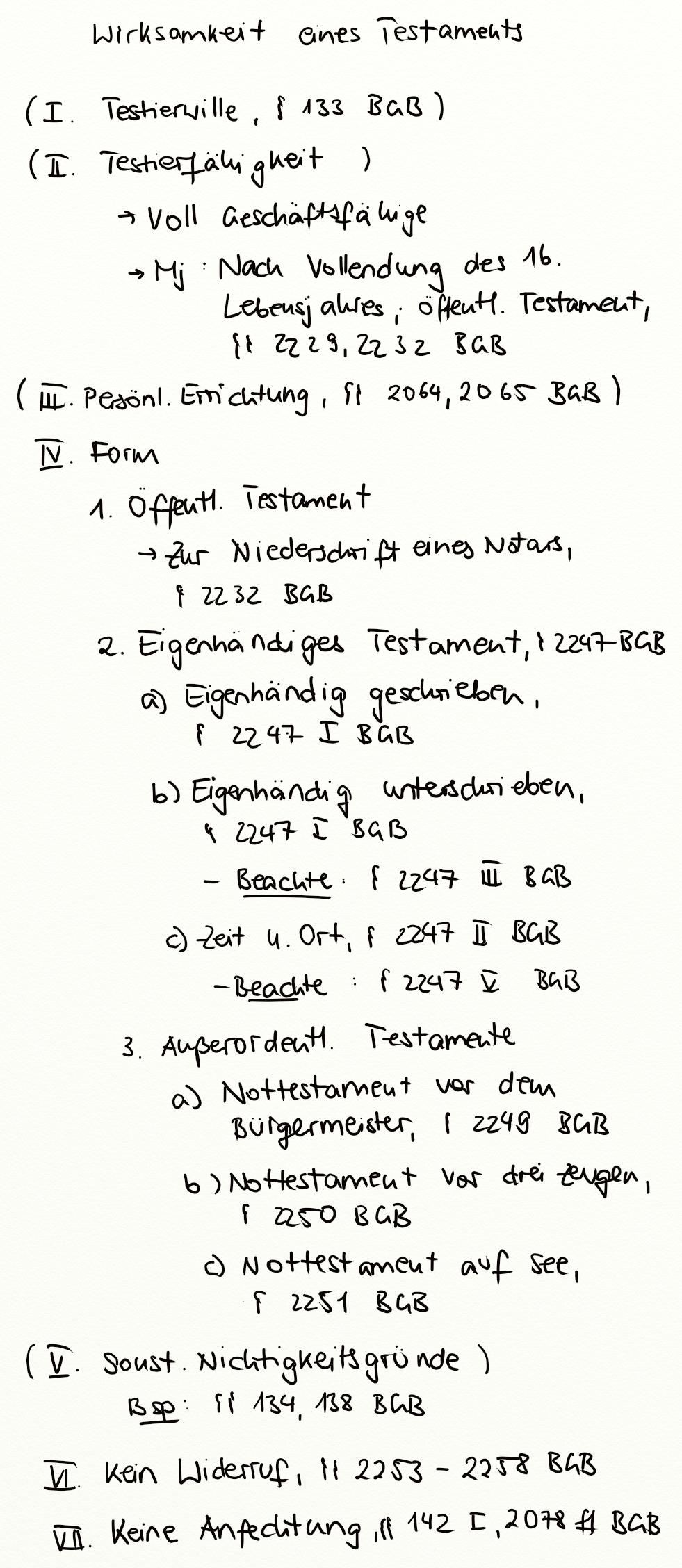 Höchstpersönliches Rechtsgeschäft, Minderjährigkeit, § 133 BGB, Öffentliches Testament, § 2232 BGB, § 2229 BGB, Testierwille, Testierfähigkeit, Testament, § 142 I BGB, § 2253 BGB, Anfechtung eines Testaments, § 2078 BGB, § 2249 BGB, § 2250 BGB, § 2251 BGB, Widerruf eines Testaments, § 2247 IV BGB, § 2247 V BGB, Außerordentliches Testament, Nottestament, § 2064 BGB, § 2065 BGB, Eigenhändiges Testament, § 2247 II BGB, § 2247 I BGB, § 142 BGB, Anfechtung, § 2247 BGB