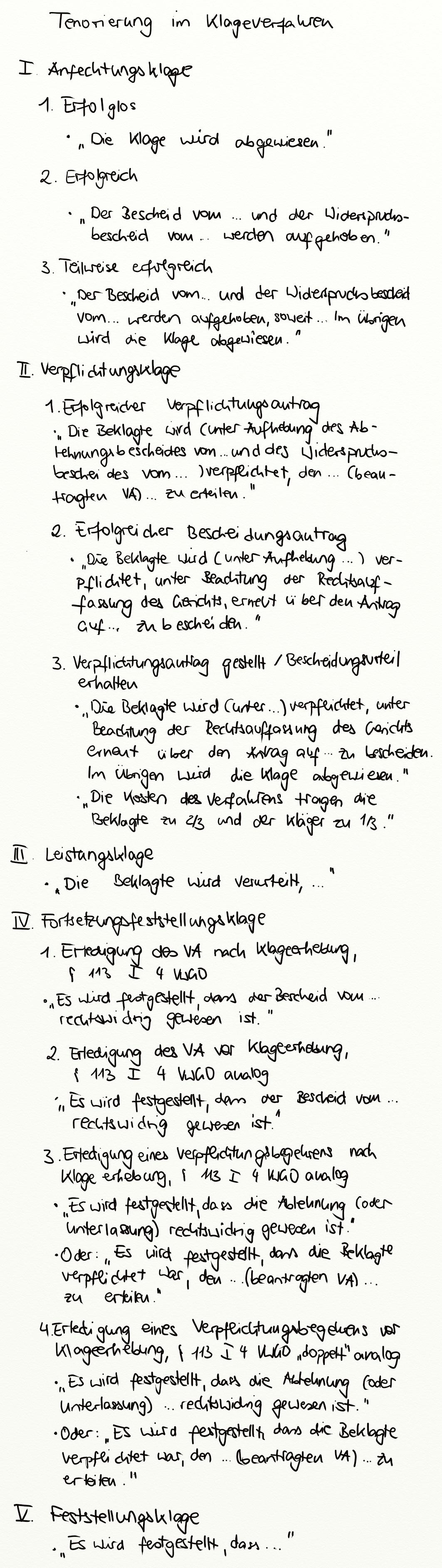Tenorierung im Klageverfahren