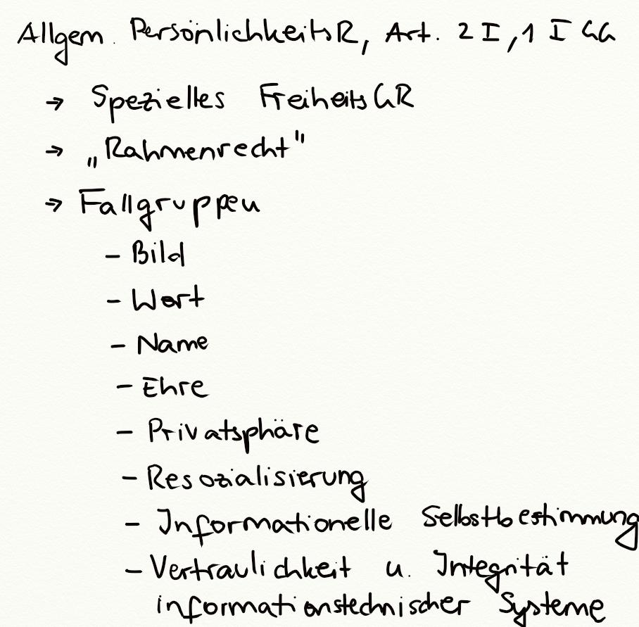 Allgemeines Persönlichkeitsrecht, Art. 2 I, 1 I GG