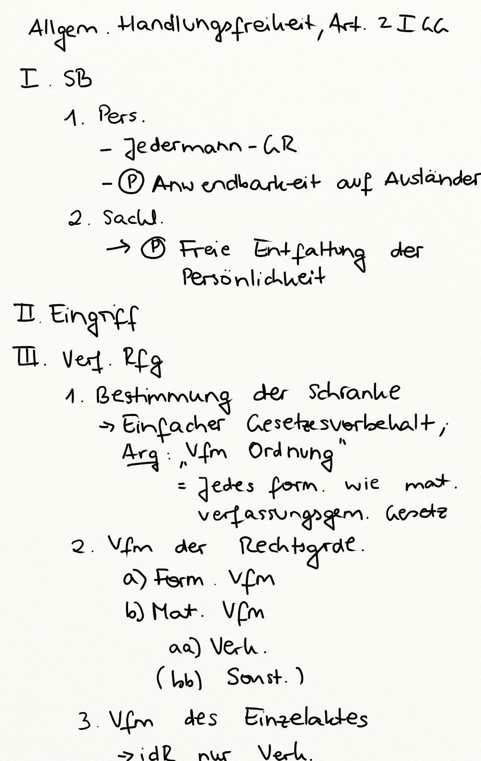 Allgemeine Handlungsfreiheit, Art. 2 I GG