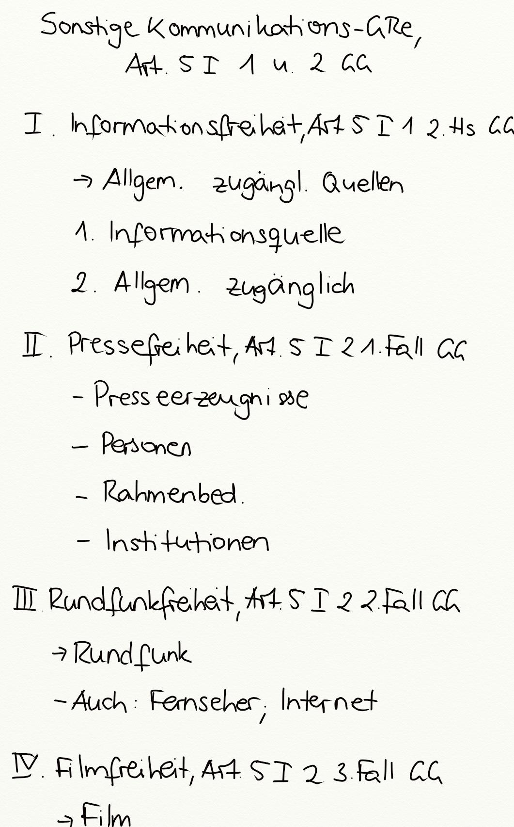Sonstige Kommunikations-Grundrechte, Art. 5 I 1 u. 2 GG