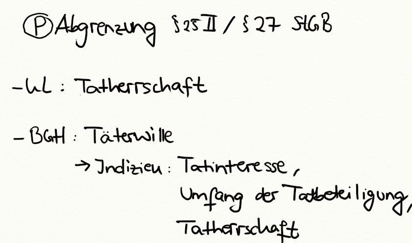 Problem - Abgrenzung Mittäterschaft-Beihilfe