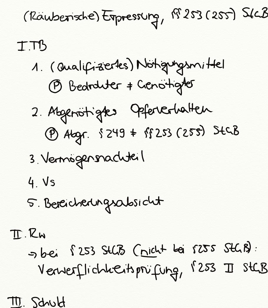 (Räuberische) Erpressung, §§ 253 (255) StGB