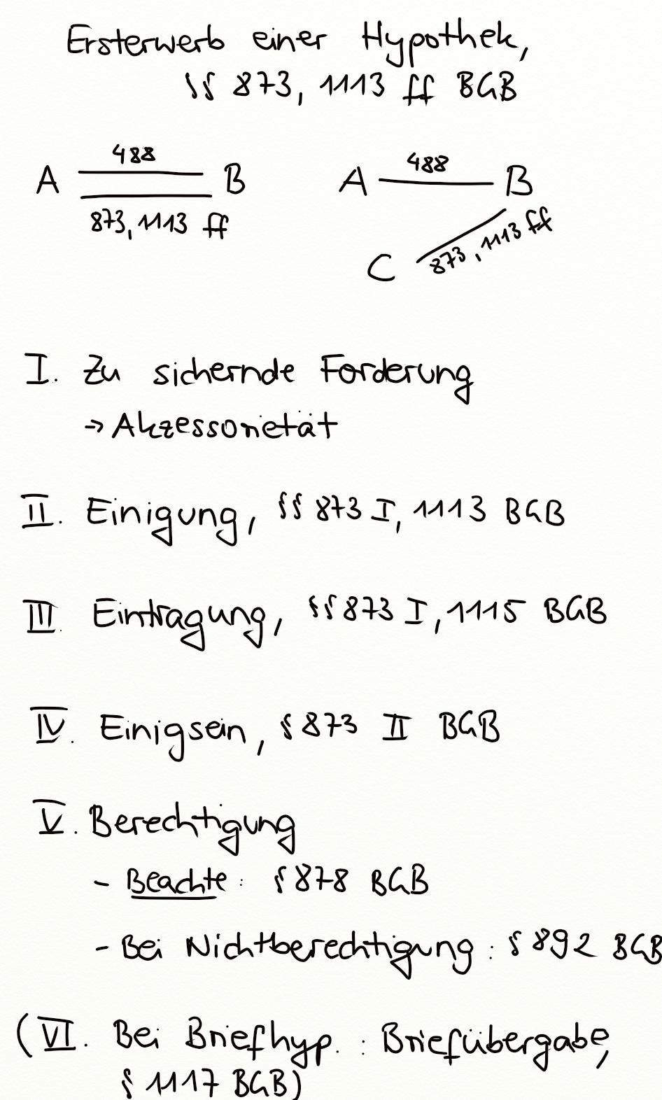 Ersterwerb einer Hypothek, §§ 873, 1113 ff. BGB
