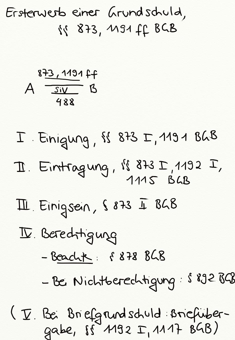 Ersterwerb einer Grundschuld, §§ 873, 1191 ff. BGB