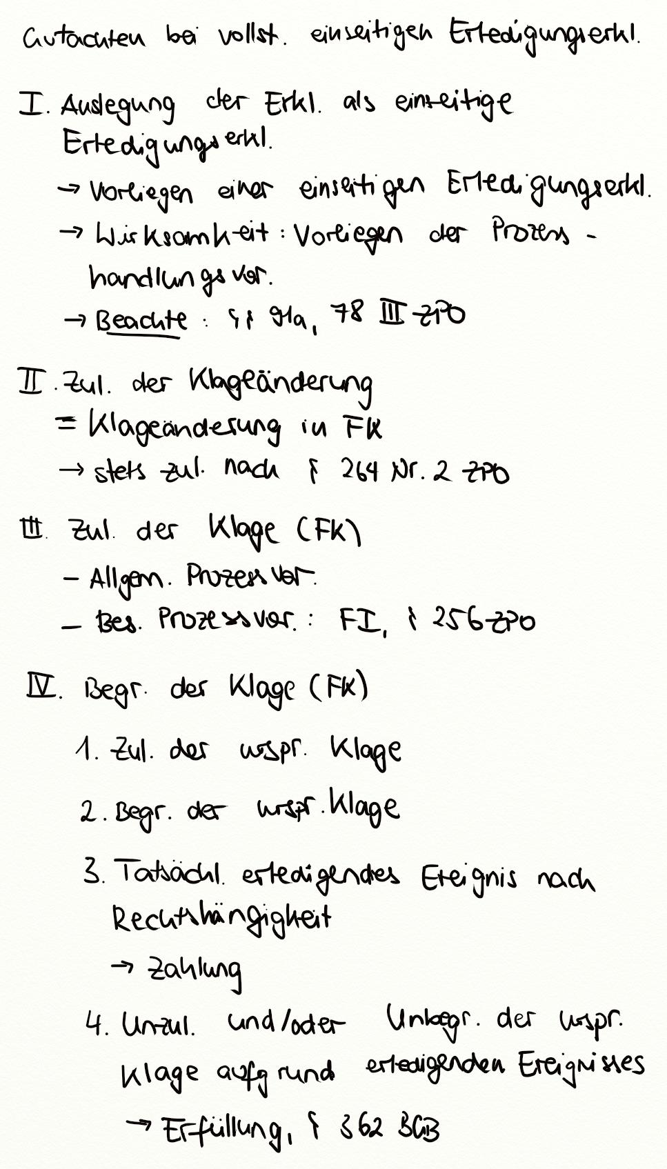Gutachten bei vollständiger einseitiger Erledigungserklärung