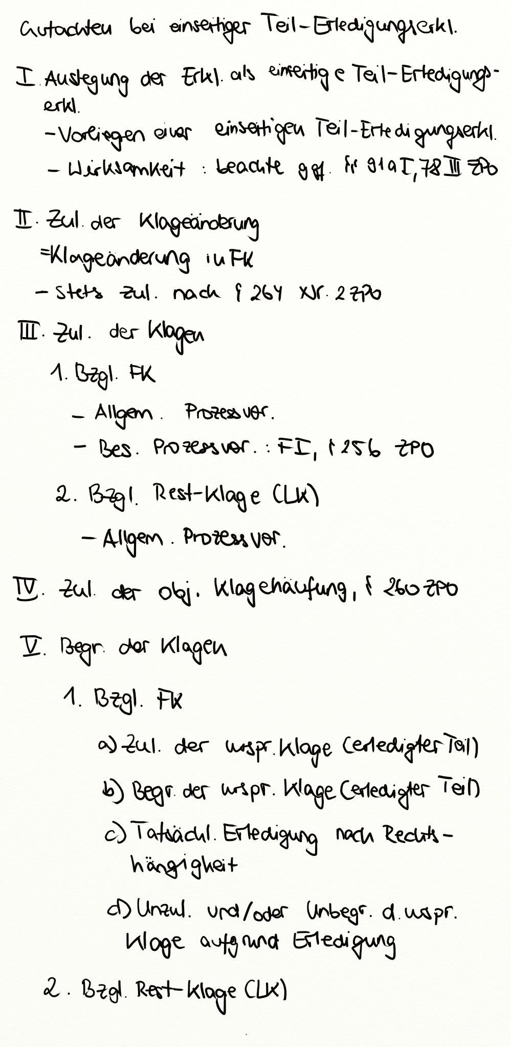 Gutachten bei einseitiger Teil-Erledigungserklärung