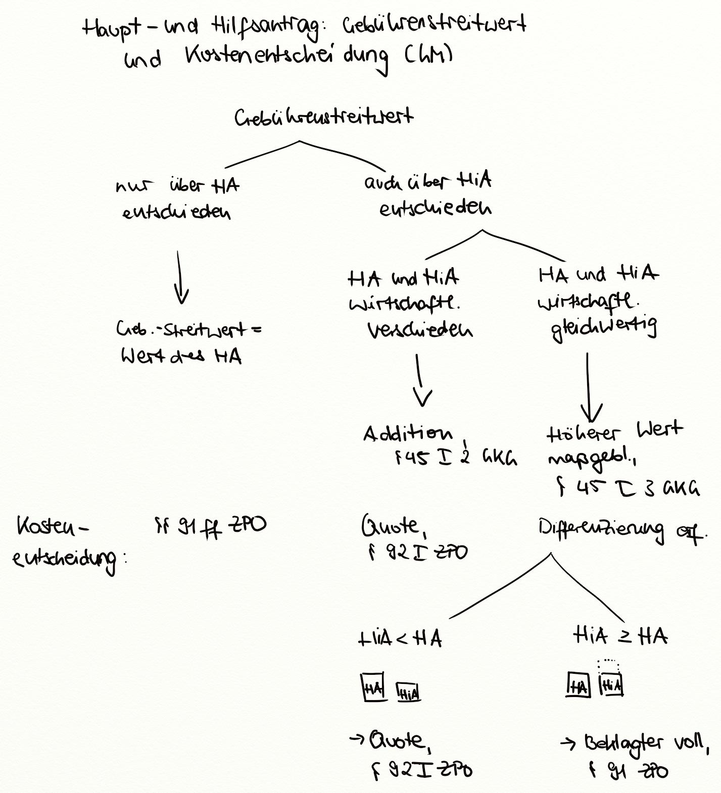 Haupt- und Hilfsantrag - Gebührenstreitwert und Kostenentscheidung