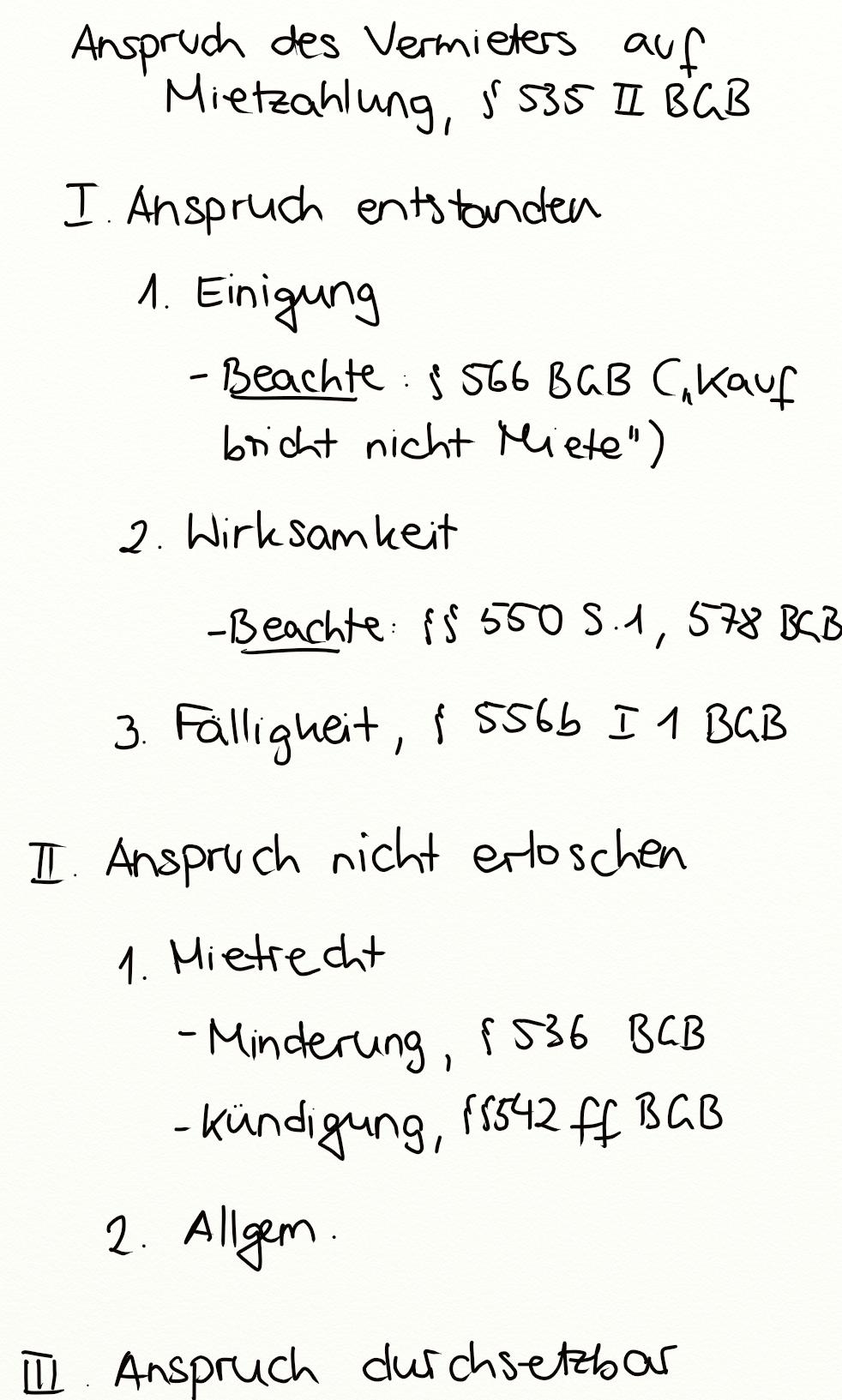 Anspruch des Vermieters auf Mietzahlung, § 535 II BGB
