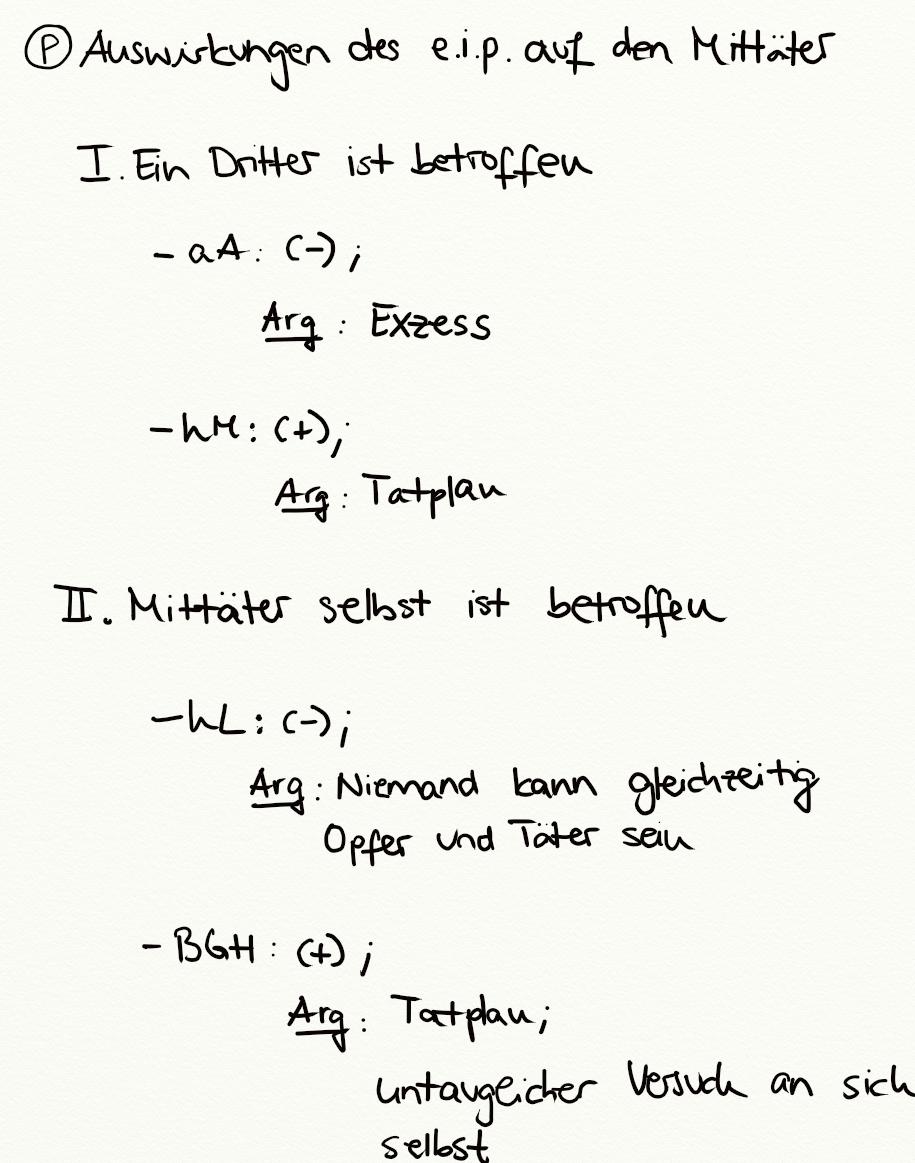 Problem - Auswirkungen des e.i.p. auf den Mittäter