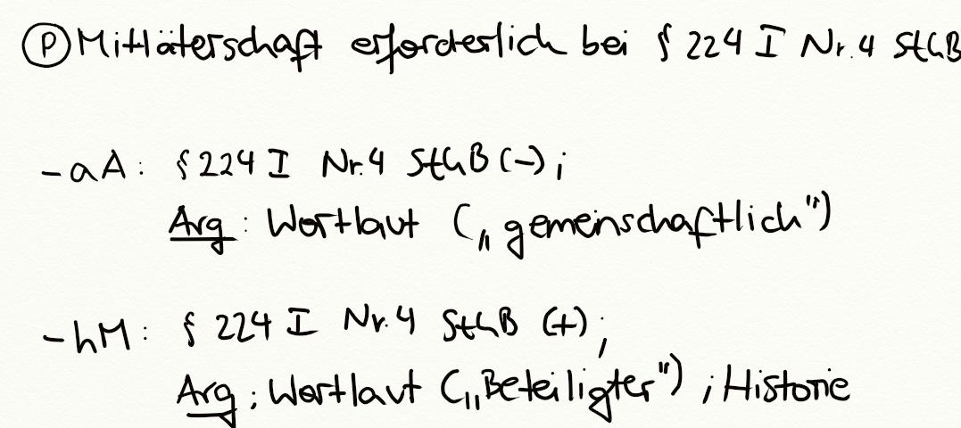Problem - Erforderlichkeit der Mittäterschaft bei § 224 I Nr. 4 StGB