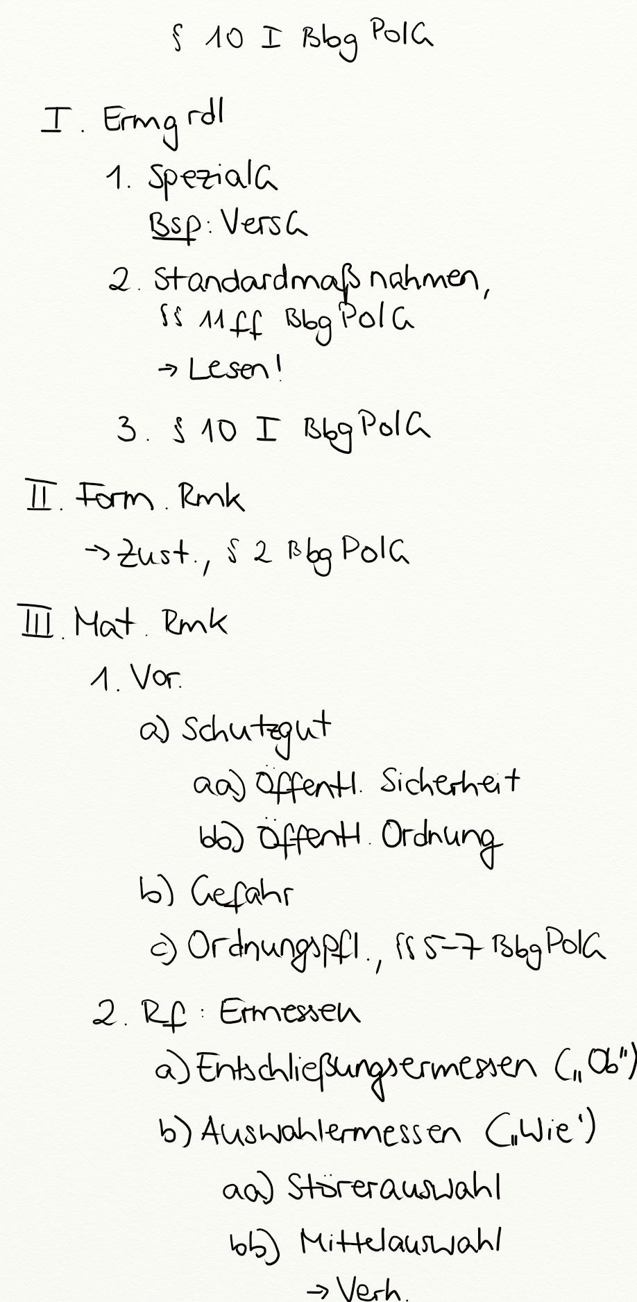 Polizeirechtliche Generalklausel, § 8 I PolG, § 14 I OBG
