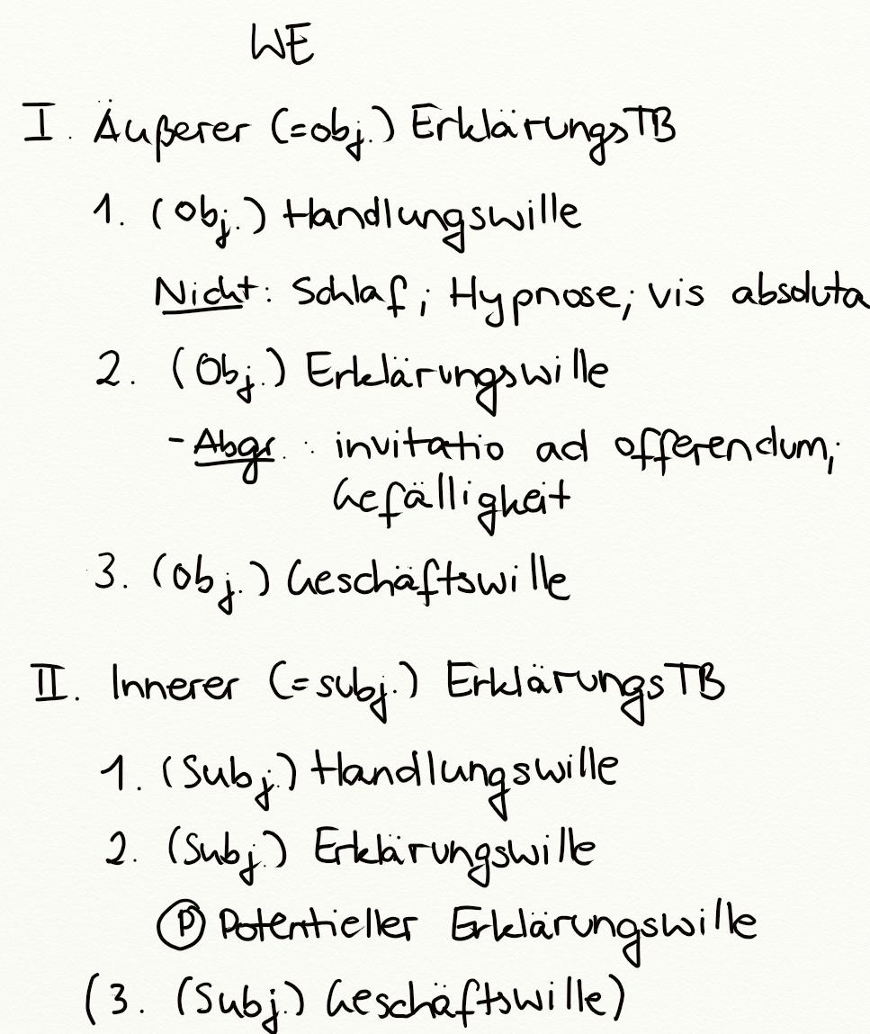 Handlungswille, Willenserklärung, Geschäftswille, Rechtsbindungswille, Gefälligkeit, Invitatio ad offenrendum, Hypnose, Schlaf, vis absoluta, Potentieller Erklärungswille, äußerer Erklärungstatbestand, innerer Erklärungstatbestand, Potentielles Erklärungsbewusstsein, Erklärungswille, Erklärungsbewusstsein, objektiver Erklärungstatbestand, subjektiver Erklärungstatbestand