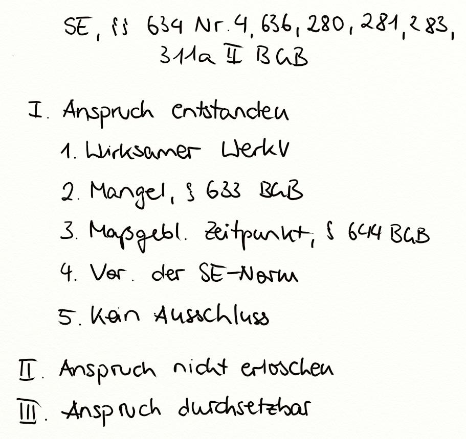 Schadensersatz, §§ 634 Nr. 4, 636, 280, 281, 283, 311a II BGB