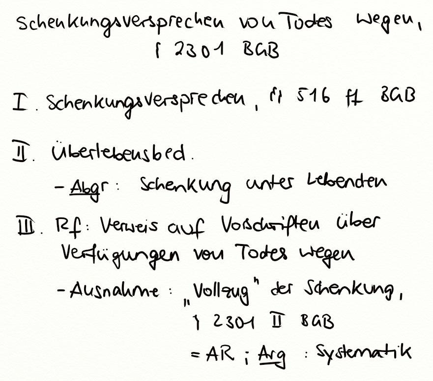 Schenkungsversprechen von Todes wegen, § 2301 BGB