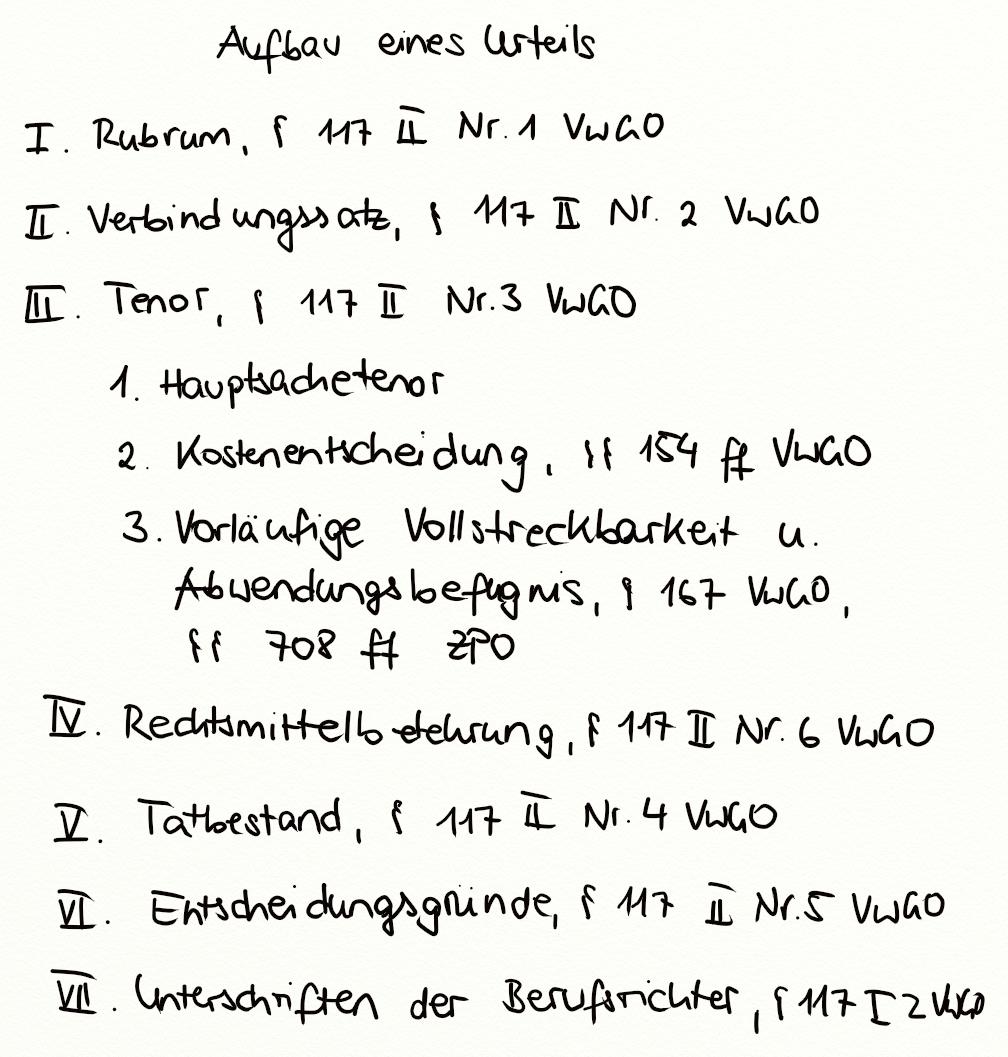 Hauptsachetenor, Tenor, Verbindungssatz, Urteil, Rubrum, § 154 VwGO, § 167 VwGO, § 117 II Nr. 5 VwGO, § 117 II Nr. 6 VwGO, § 708 ZPO, Kostenentscheidung, Entscheidungsgründe, Rechtsmittelbelehrung, Abwendungsbefugnis, vorläufige Vollstreckbarkeit, § 117 II VwGO, § 117 I 2 VwGO, § 117 I VwGO, § 117 VwGO, § 117 II Nr. 4 VwGO, § 117 II Nr. 3 VwGO, Tatbestand, § 117 II Nr. 2 VwGO, § 117 II Nr. 1 VwGO