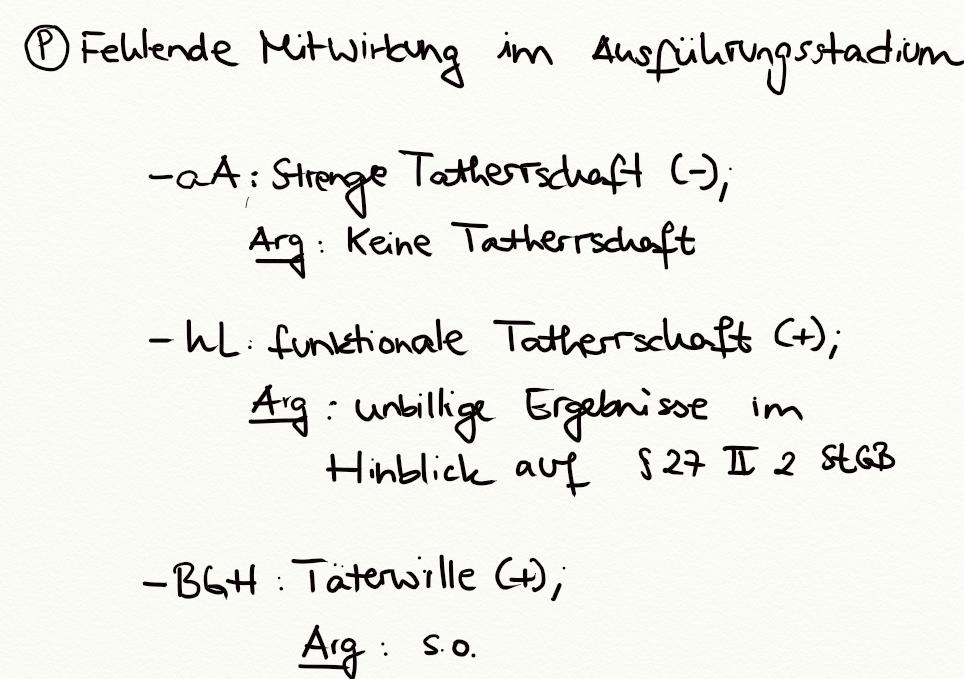 Problem - Abgrenzung Mittäterschaft-Beihilfe