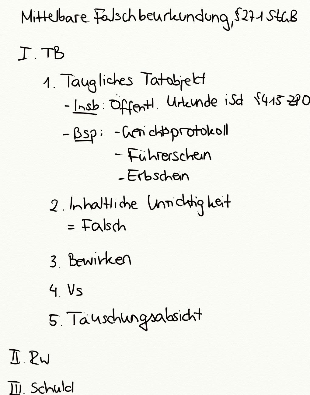 Mittelbare Falschbeurkundung, § 271 StGB