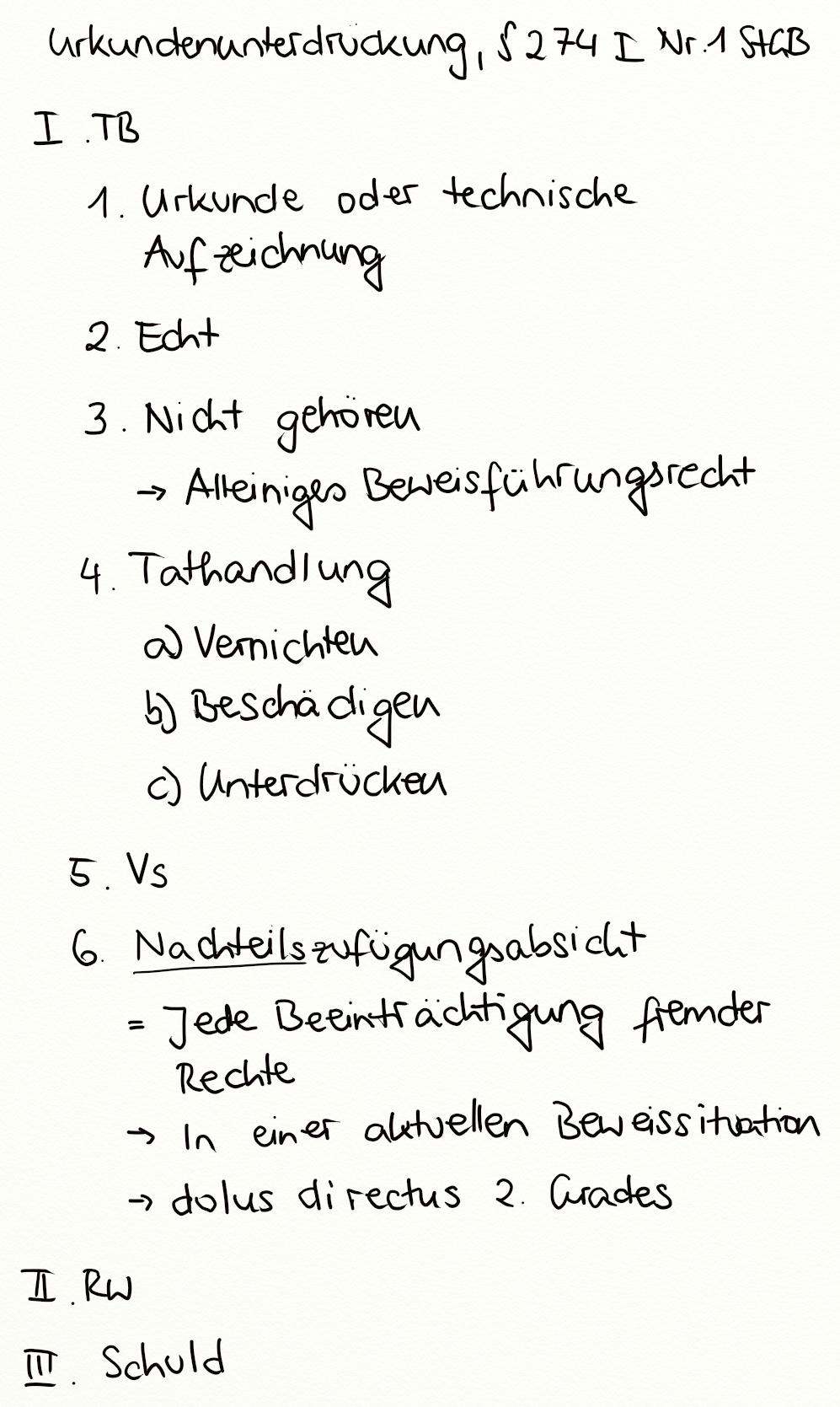 Urkundenunterdrückung, § 274 I Nr. 1 StGB