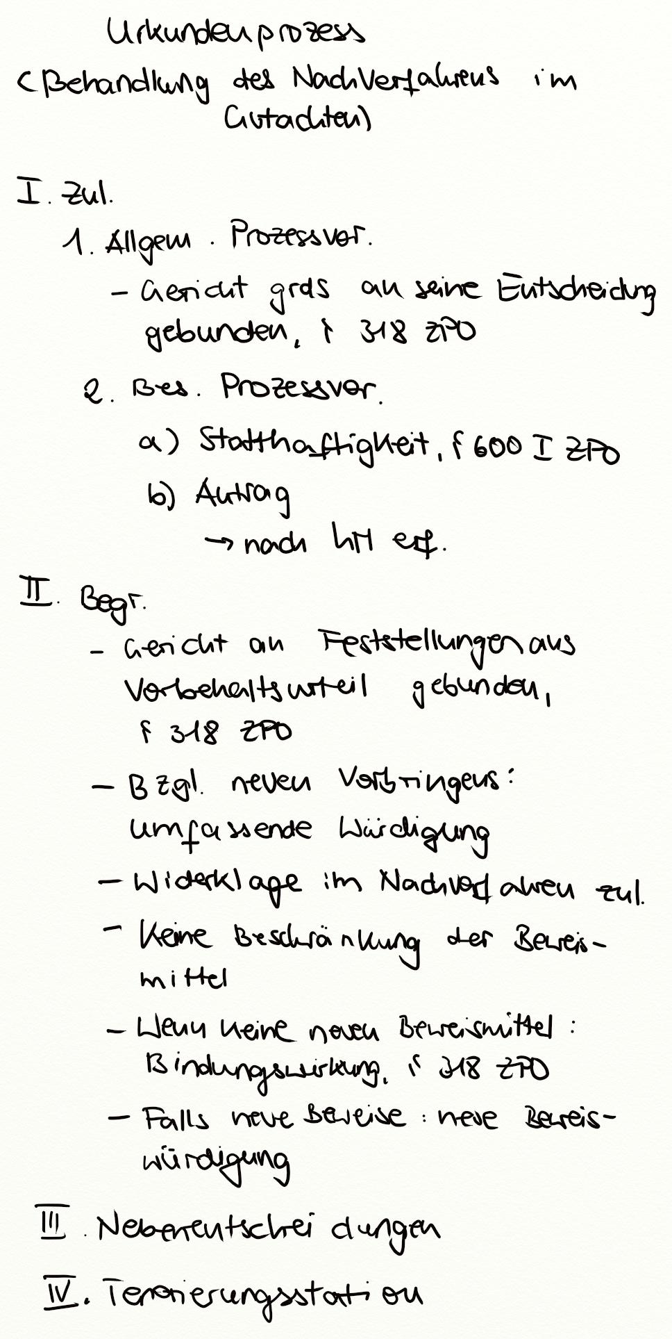 Urkundenprozess (Behandlung des Nachverfahrens im Gutachten)