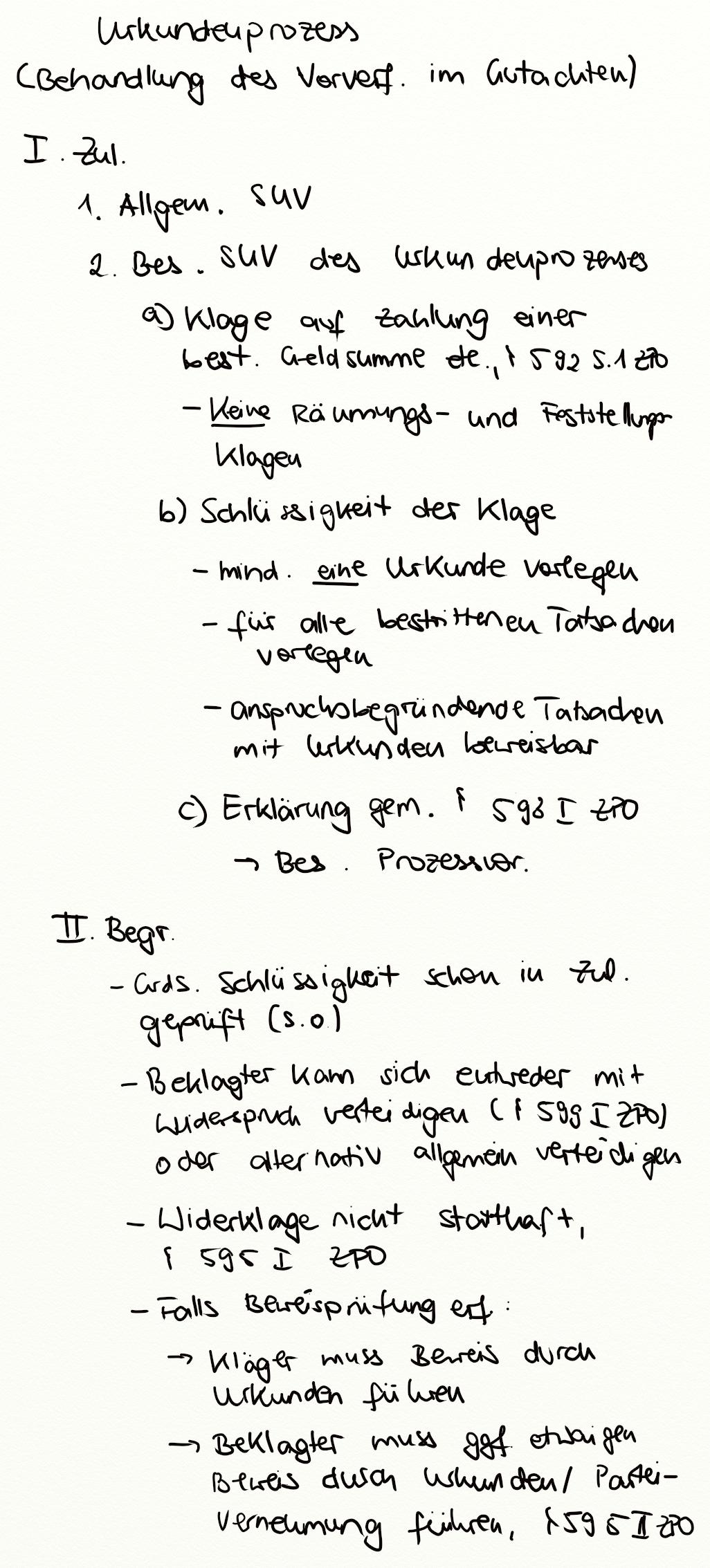 Urkundenprozess (Behandlung des Vorverfahrens im Gutachten)