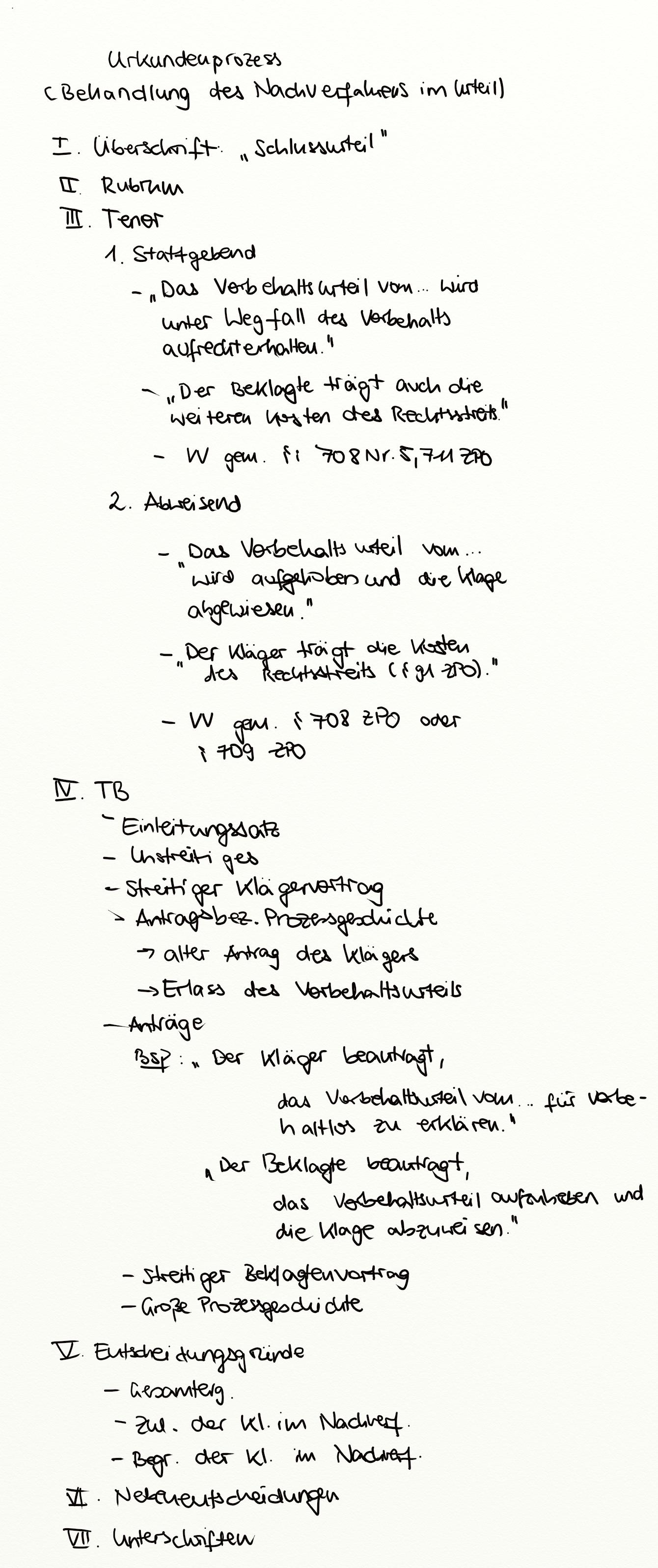 Urkundenprozess (Behandlung des Nachverfahrens im Urteil)