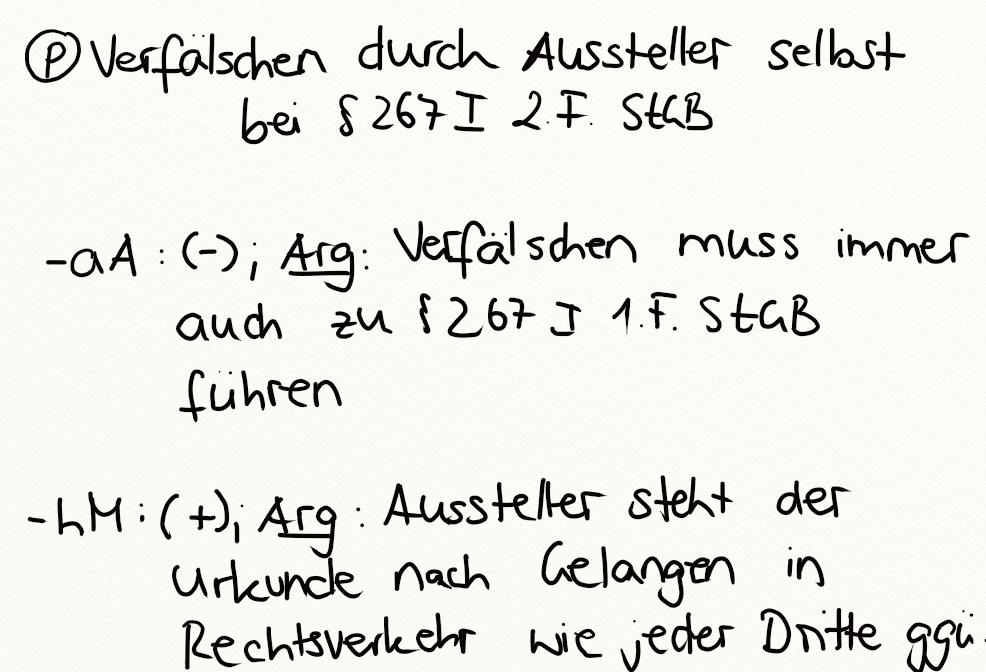 Problem - Verfälschen durch Aussteller selbst, § 267 I 2. Fall StGB