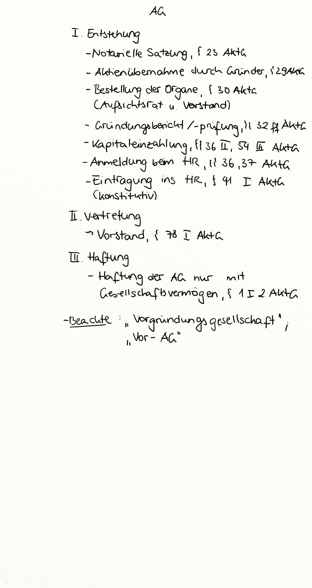 § 54 AktG, § 54 III AktG, § 1 AktG, § 1 I 2 AktG, § 36 II AktG, § 36 III AktG, § 41 AktG, § 41 I 1 AktG, Aktiengesellschaft, Eintragung ins Handelsregister, Konstitutive Eintragung ins Handelsregister, Vorgründungsgesellschaft, § 29 AktG, § 23 AktG, § 36 AktG, § 30 AktG, Vertretungsmacht, Vor-AG, Vorstand