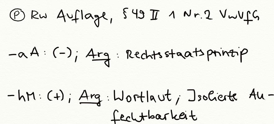 Problem - Rechtswidrige Auflage, § 49 II 1 Nr. 2 VwVfG